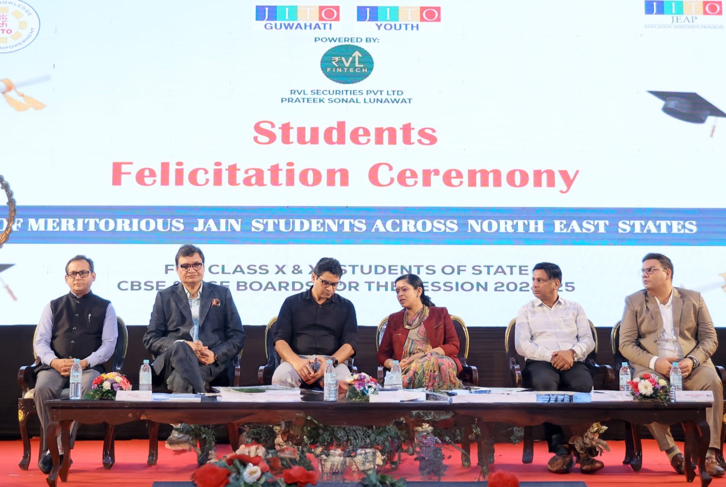 गुवाहाटी। जैन इंटरनेशनल ट्रेड ऑर्गेनाइजेशन (जीतो) गुवाहाटी चैप्टर के तत्वावधान में ‘प्रेरणा’ नामक भव्य सम्मान समारोह का आयोजन माछखोवा स्थित आईटीए सेंटर में किया गया। इस कार्यक्रम में असम सहित पूर्वोत्तर के विभिन्न हिस्सों से आए 200 से अधिक मेधावी विद्यार्थियों को सम्मानित किया गया, जिन्होंने 10वीं और 12वीं कक्षा की परीक्षा में असाधारण प्रदर्शन किया है।