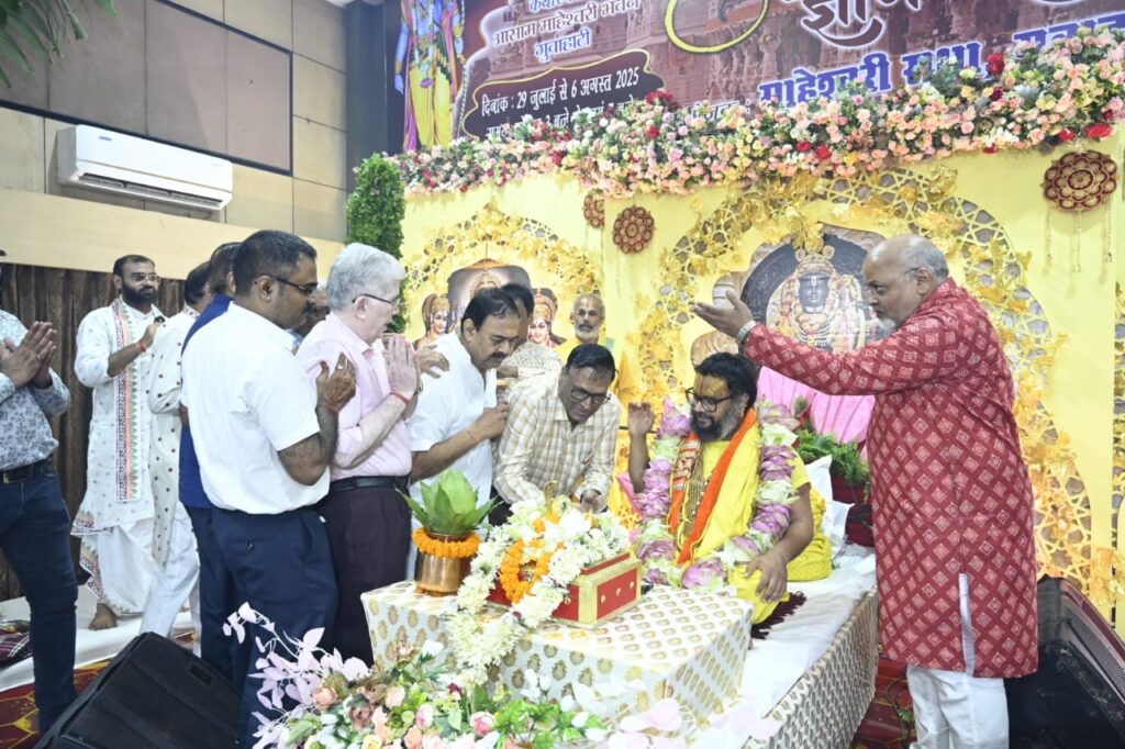 आज का दिन विशेष भी रहा क्योंकि यह पूज्य महंत श्री भरत शरण जी महाराज का जन्म दिवस था। इस पावन अवसर पर सीताराम बिहानी, रमेश चांडक सहित अनेक श्रद्धालुओं ने महाराज श्री का कमल पुष्पों व तुलसी माला से अभिनंदन कर उनका आशीर्वाद प्राप्त किया। व्यासपीठ पर उपस्थित होकर बाबूलाल सोनी, जुगल बुधिया, बनवारीलाल मुंदड़ा, दिलीप गगड़, संतोष तापड़िया, मनोज सोमानी, राजेश लुनावत, प्रदीप भुवालका, कमल बंसल सहित सैकड़ों श्रद्धालुओं ने आरती में भाग लिया और आध्यात्मिक ऊर्जा का अनुभव किया।