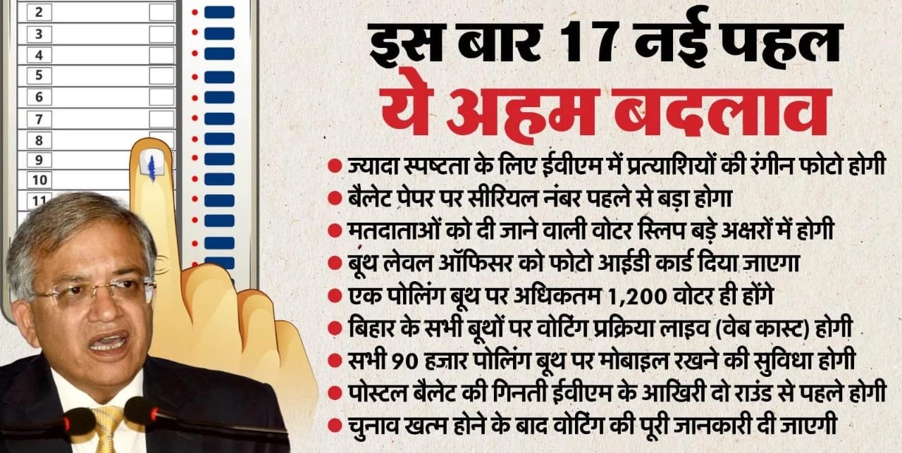 इससे पहले रविवार को मुख्य चुनाव आयुक्त (सीईसी) ज्ञानेश कुमार ने प्रेस कॉन्फ्रेंस कर कहा था कि निर्वाचन आयोग बिहार के आगामी विधानसभा चुनावों में 17 नई पहल लागू करने जा रहा है। इनमें से कुछ पहल मतदान प्रक्रिया से पहले, कुछ उसके दौरान और कुछ प्रक्रिया खत्म होने के बाद से संबंधित हैं। कुमार ने कहा, पहली बार 100 फीसदी मतदान केंद्रों पर वेबकास्ट की सुविधा लागू की जा रही है। 243 सदस्यीय विधानसभा के लिए चुनाव 22 नवंबर को कार्यकाल पूरा होने से पूर्व कराए जाएंगे।