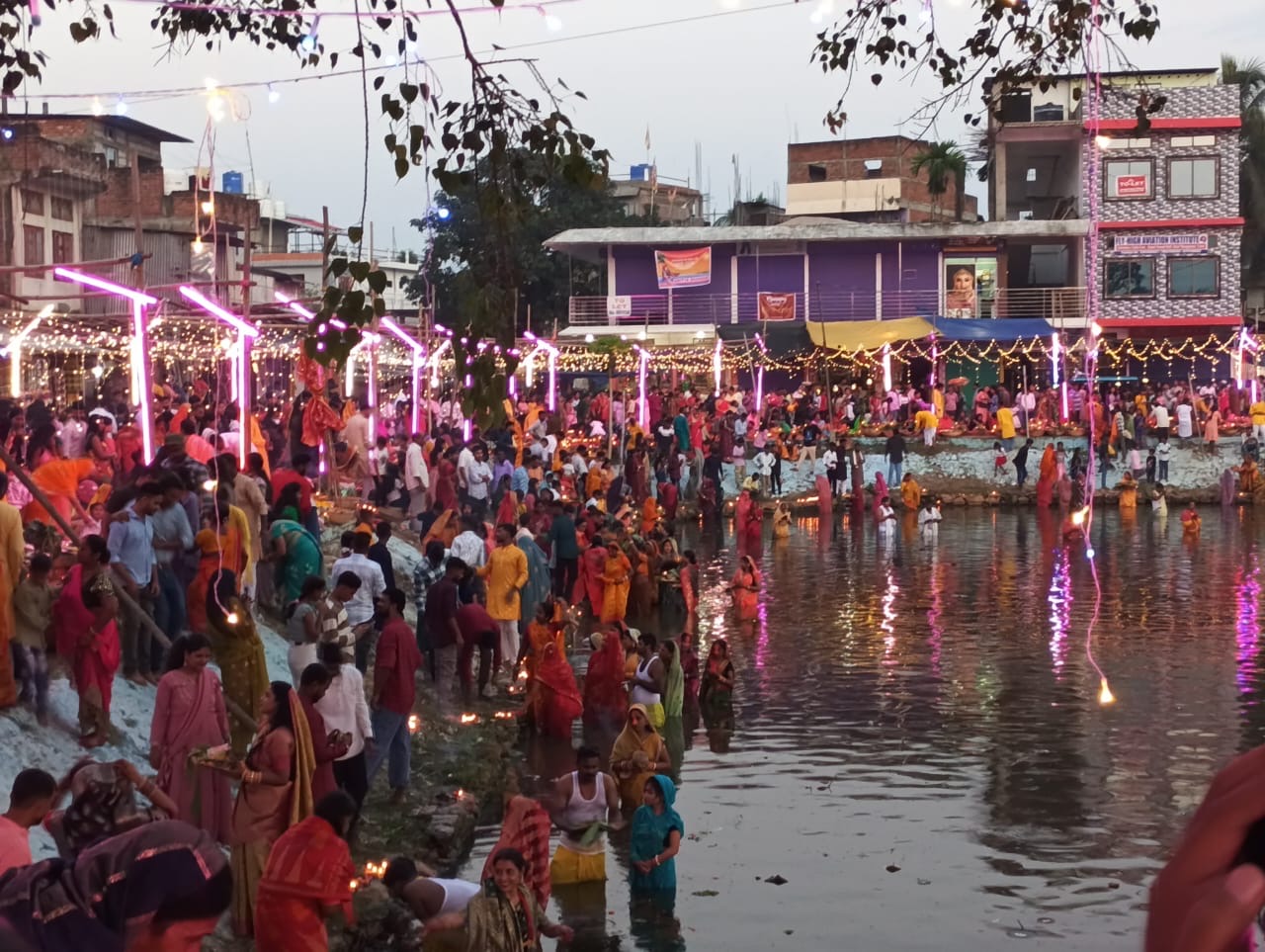 अनेक व्रतधारी जल में खड़े होकर मनोकामना पूर्ति की प्रार्थना कर रहे थे, जबकि कुछ श्रद्धालु दंडवत करते हुए घाट तक पहुँचे। बच्चों द्वारा दीप प्रज्वलन और पटाखों से माहौल उल्लासमय हो उठा। समितियों के सदस्य पूरी निष्ठा से व्यवस्था बनाने में जुटे रहे।