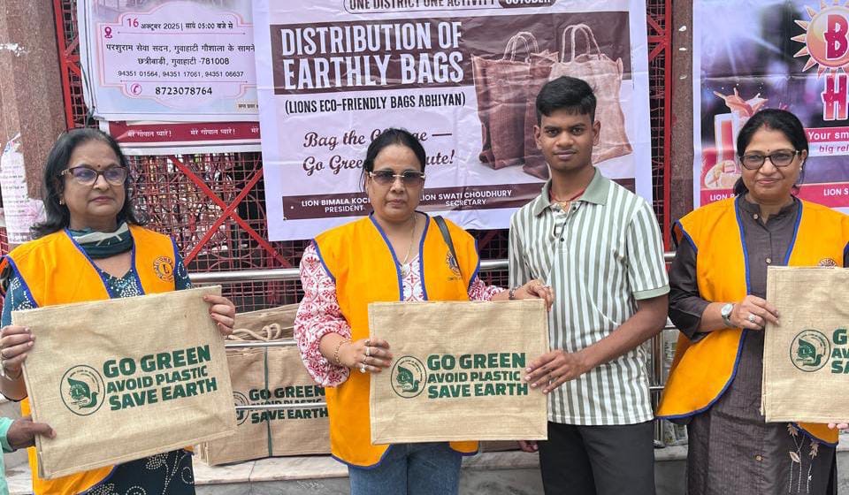 गुवाहाटी, 4 नवम्बर। पर्यावरण संरक्षण की दिशा में जागरूकता फैलाने के उद्देश्य से लायंस क्लब ऑफ गुवाहाटी उमंग की ओर से एक विशेष कार्यक्रम आयोजित किया गया। क्लब ने लायंस जिला 322जी की वन डिस्ट्रिक्ट वन एक्टिविटी पहल के तहत आठगांव स्थित गणेश मंदिर के निकट राहगिरों के बीच ईको-फ्रेंडली जूट बैग वितरित किए।