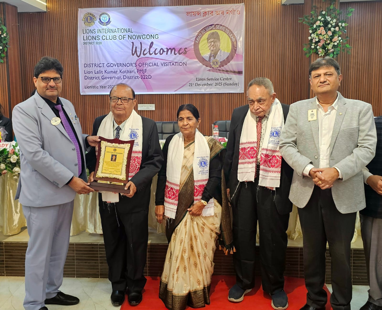 नगांव लायंस सर्विस सेंटर प्रेक्षागृह में आयोजित डी.जी. विजिट के दौरान लायन जुगल किशोर अग्रवाल द्वारा लायनिज्म में गौरवमय पचास वर्ष पूर्ण करने के उपलक्ष्य में उनका अभिनन्दन किया गया। नगांव लायंस क्लब के अध्यक्ष लायन जितेन अग्रवाल की अध्यक्षता में आयोजित इस अभिनन्दन समारोह में डिस्ट्रिक्ट गवर्नर लायन ललित कोठारी, पूर्व डिस्ट्रिक्ट गवर्नर लायन डाॅ॰ प्रवीण अग्रवाल, लायन बजरंगलाल अग्रवाल, लायन बिजय कुमार मंगलूनिया, केबिनेट सचिव लायन अनिल शर्मा, नगांव शहर के तीनों लायंस क्लबों के पदाधिकारी व सदस्य बङी संख्या में उपस्थित थे।